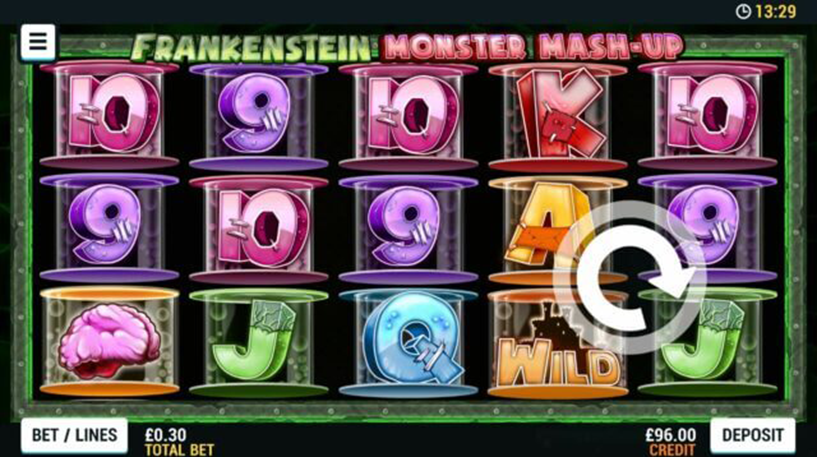 Frankenstein Monster Mash Up Slot takes you to an ominous lab and sets you as a doctor whose job is to merge monsters’ body parts together and bring ghoulish prizes to life on the reels. This sinister-looking slot offers 5 reels, 3 rows with 15 monstrous Paylines to trigger wins.